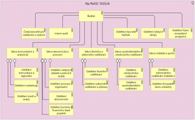 Organizační struktura má tvar stromu se špičkou reprezentující vedení úřadu a dále níže jednotlivé úrovně útvarů. Útvary (reprezentované aktéry) jsou volitelně rozdělené dle lokalit.