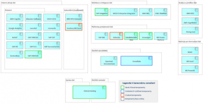 * Stejně jako u byznysové architektury, využijte diagramy z popisu stávajícího stavu, udělejte jejich verzi platnou pro cílový stav a vyznačte změny.