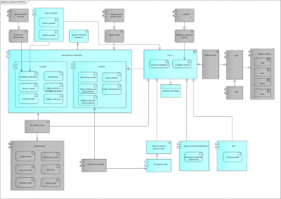 Diagram Struktury aplikací se v IK používá jako tzv. diagram integrační architektury (Integrace aplikací), který napříč celým aplikačním portfoliem úřadu ukazuje klíčové (principiální) integrační vazby mezi IS a jejich komponentami.