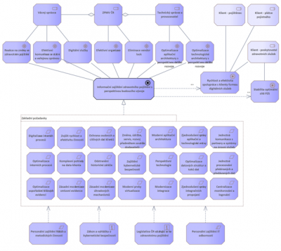 * Připravované byznysové změny se projeví v modelování architektur. Tyto změny budou promítnuty do nové informační koncepce spolu se zdůvodněním požadavků ICT na zajištění služeb úřadu v požadované kvalitě.